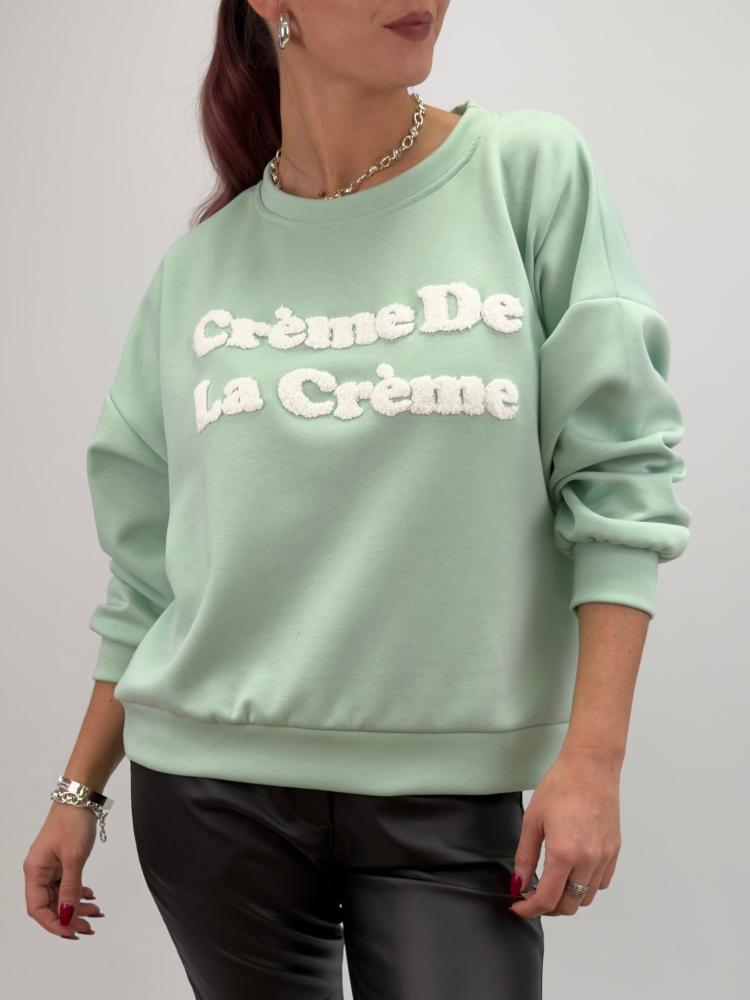 Härligt mjuk och skön mintgrön sweater med upphöjd text - Onesize (stl 34-46)