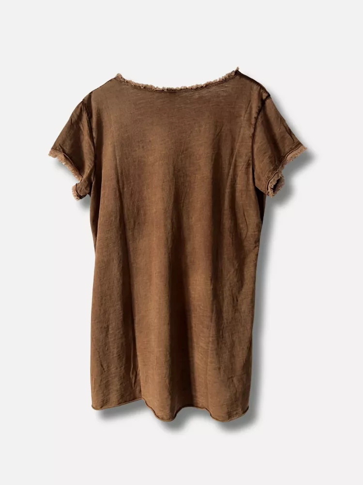 En lite kaxigare tischa med fransig kant i v-hals och ärmslut - Onesize