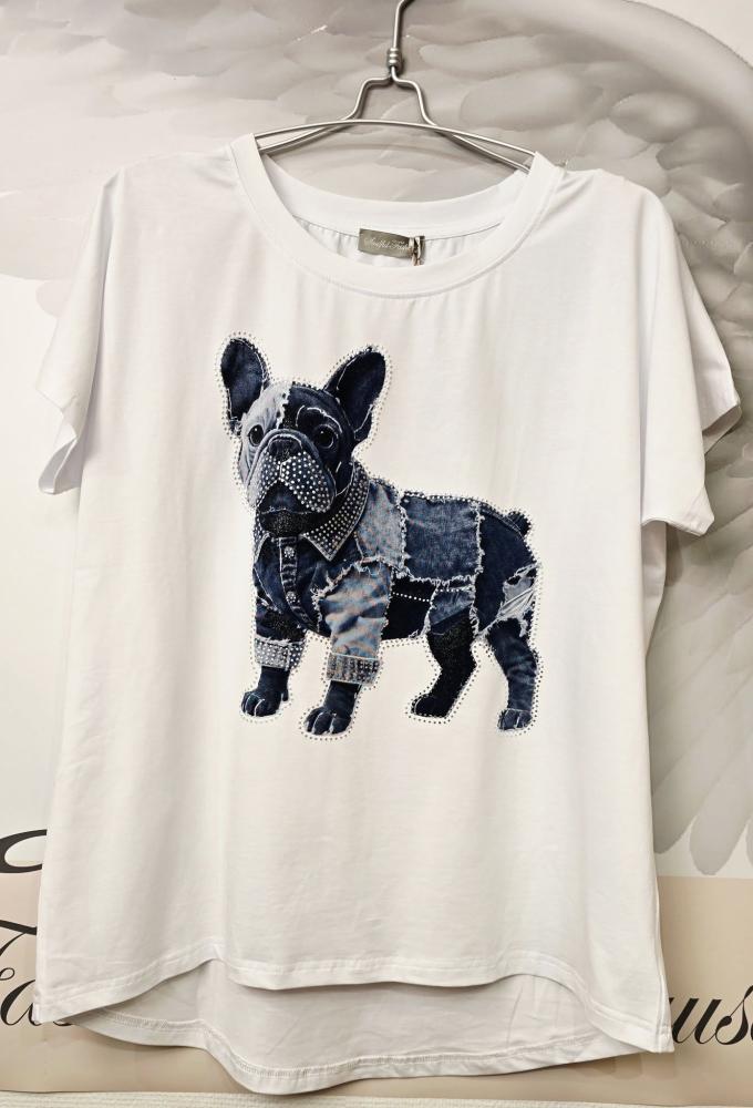 Vit och fräsch tischa i en kvalité som känns lite lyxig - med print av en fransk bulldog - Onesize