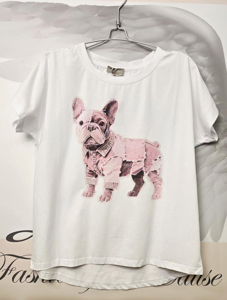 Vit och fräsch tischa i en kvalité som känns lite lyxig - med print av en fransk bulldog - Onesize