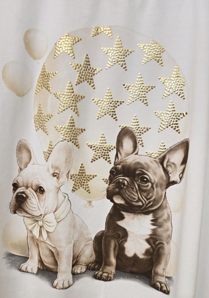 Vit och fräsch tischa med print av två charmiga frallor / fransk bulldog - Onesize