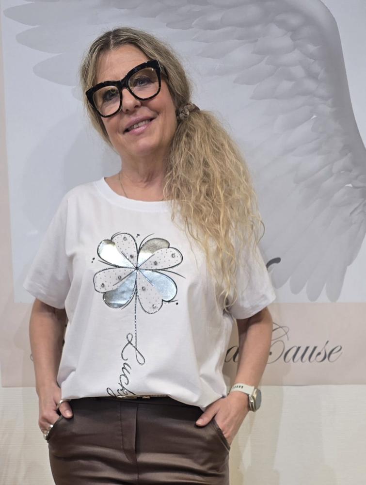 t-shirt fyrklöver silver, topp med print och text, glittrig t-shirt dam, onesize bomullstopp, t-shirt Soulful Fashion
