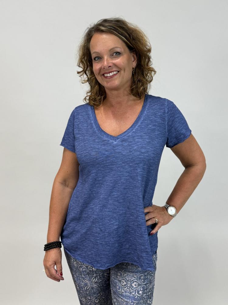 Skön mörkt blå tischa i bomull, V-halsad och A-linjeformad - Dubbelstorlek