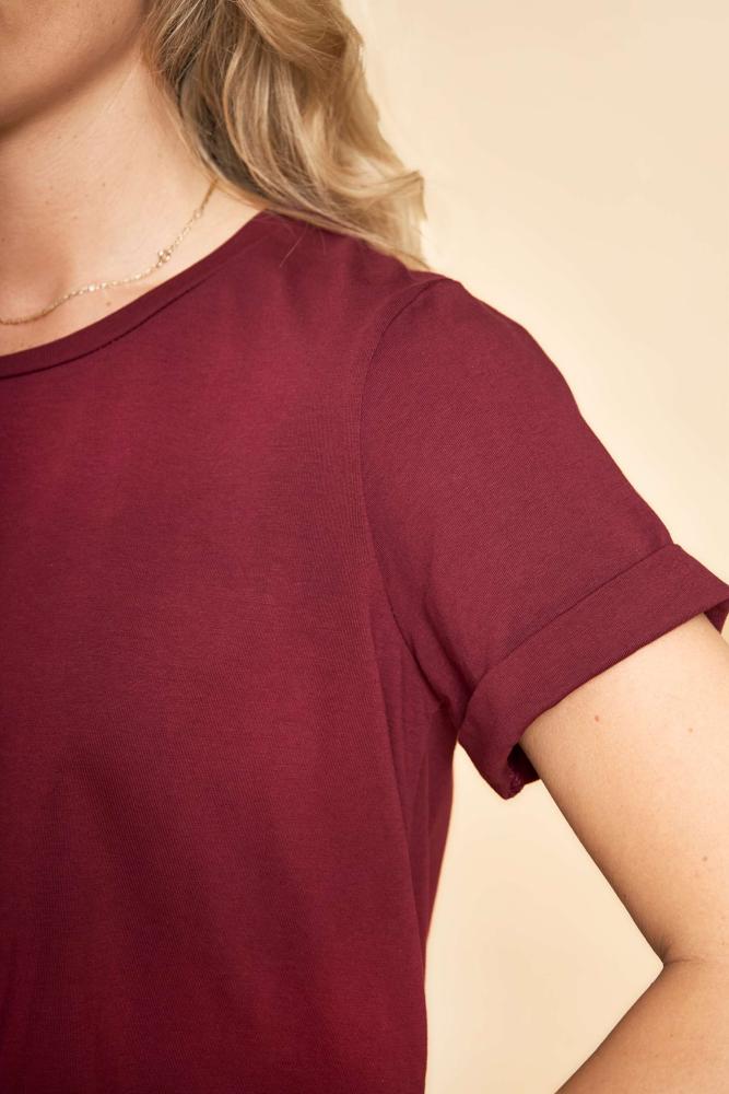 Mörkt plommonfärgad rundhalsad tischa med lite lyx-känsla - Dubbelstorlek
