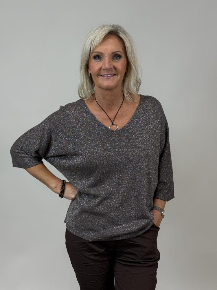 Festlig v-halsad topp med härlig lyster - Onesize