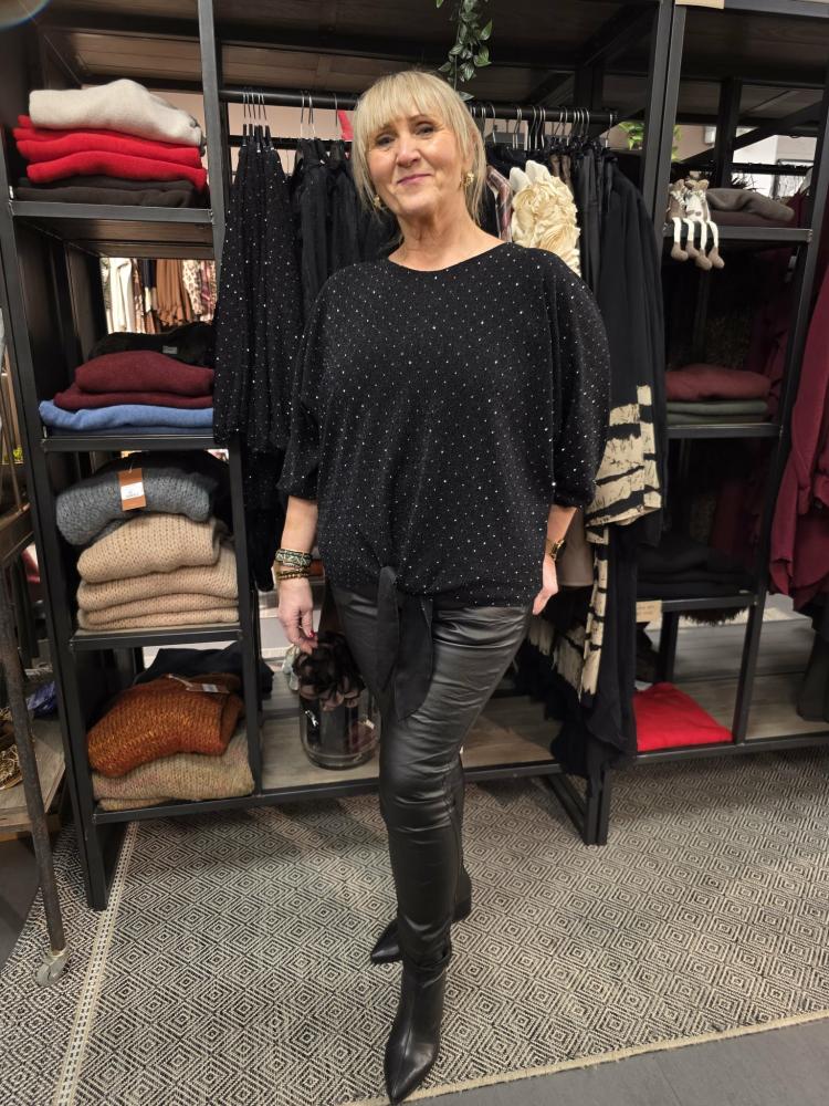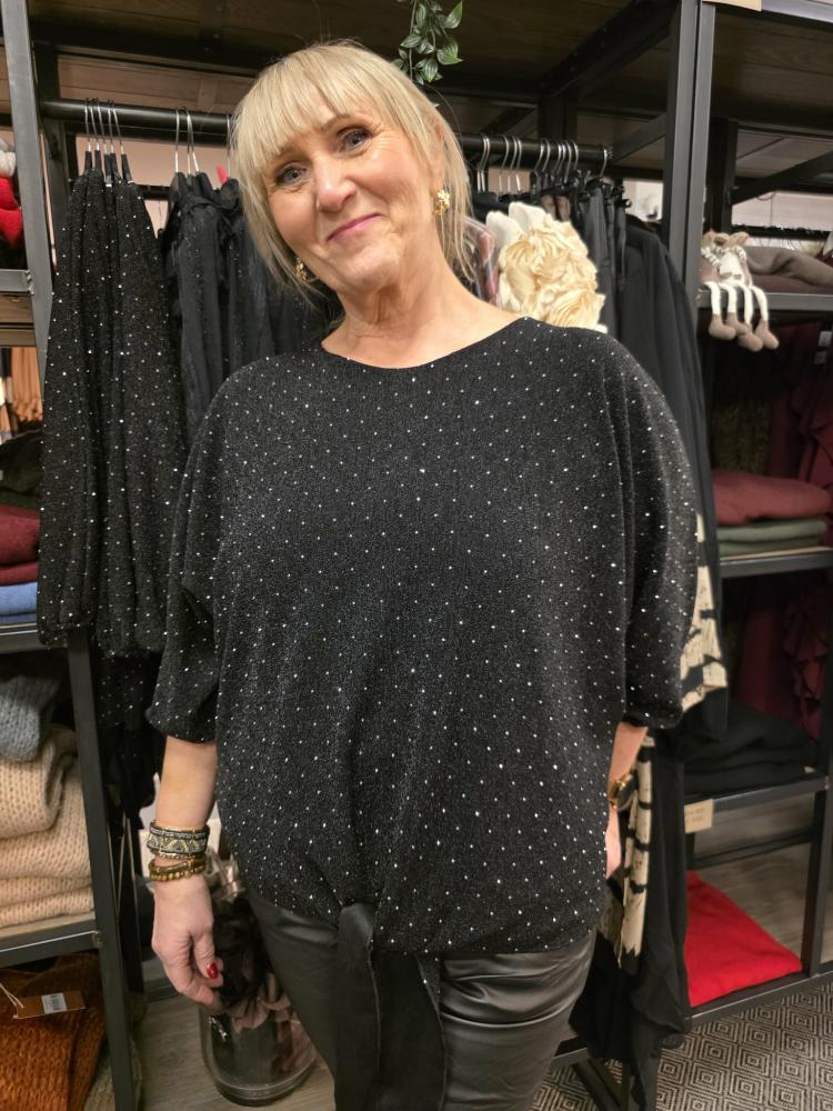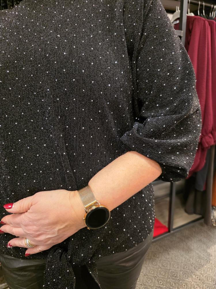 Topp, Glittrig med knyt fram, Svart Emma - Caramelle Fashion