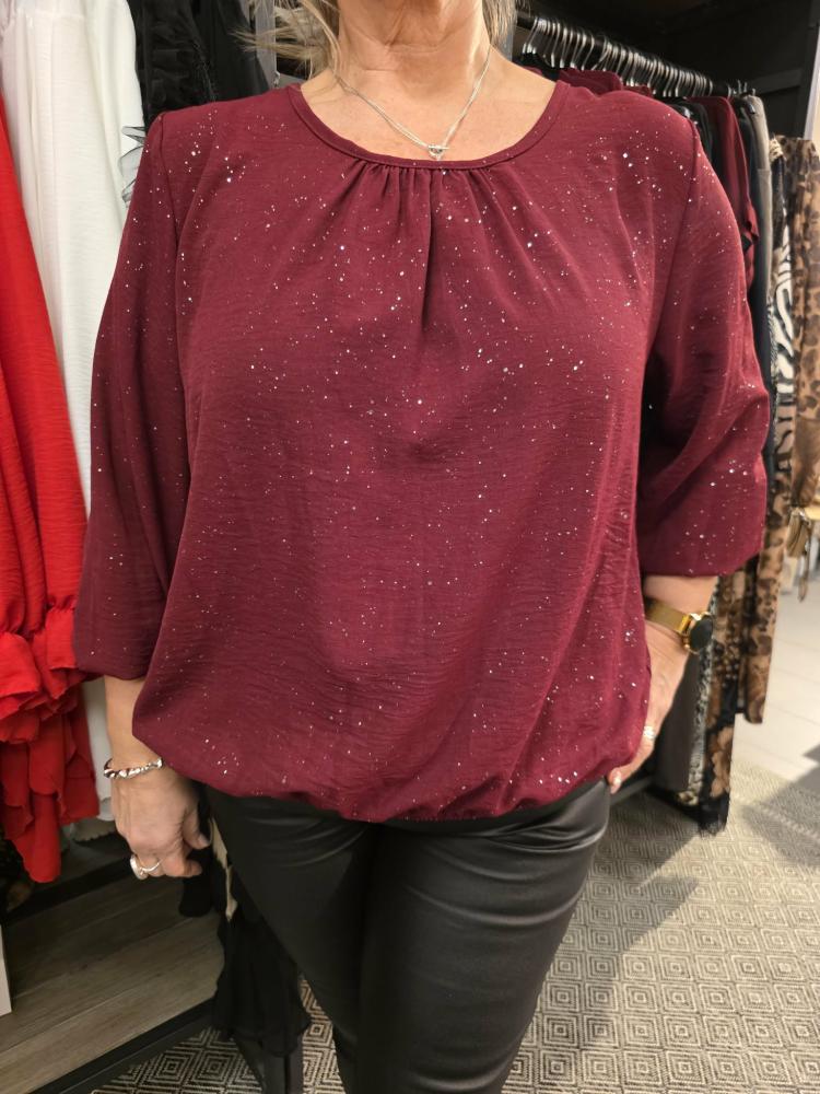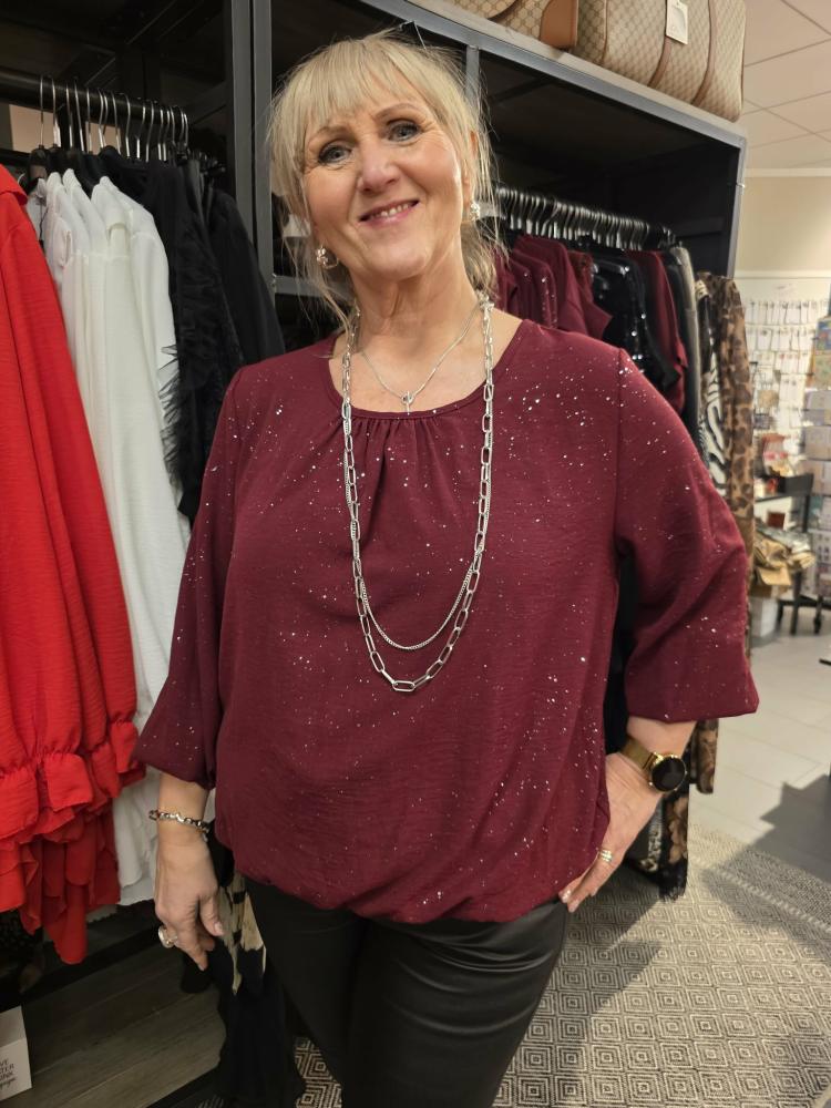 Topp Glittrig, Vinröd Viktoria - Caramelle Fashion