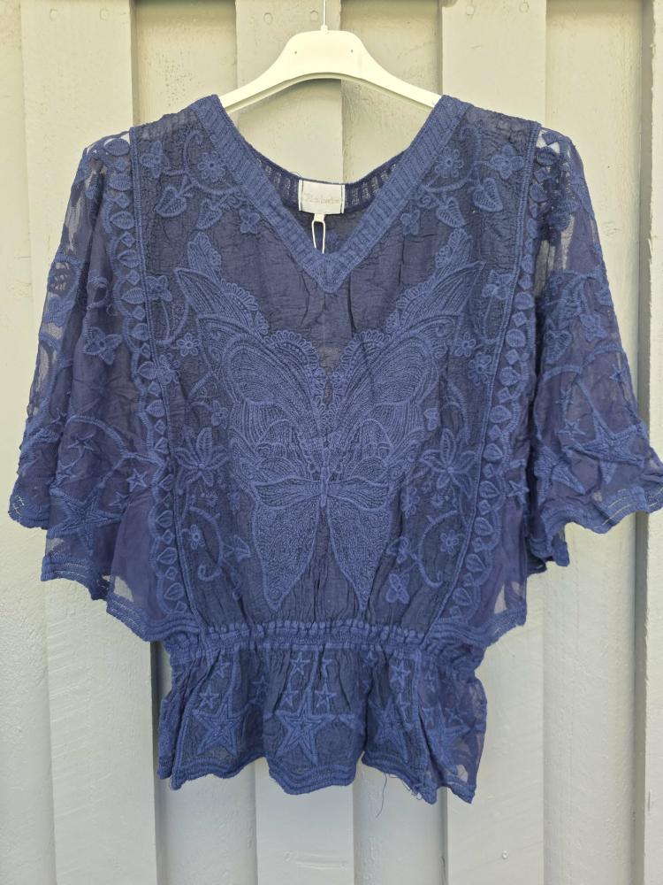 Topp i spets, Marinblå Fjäril Nala - Caramelle Fashion