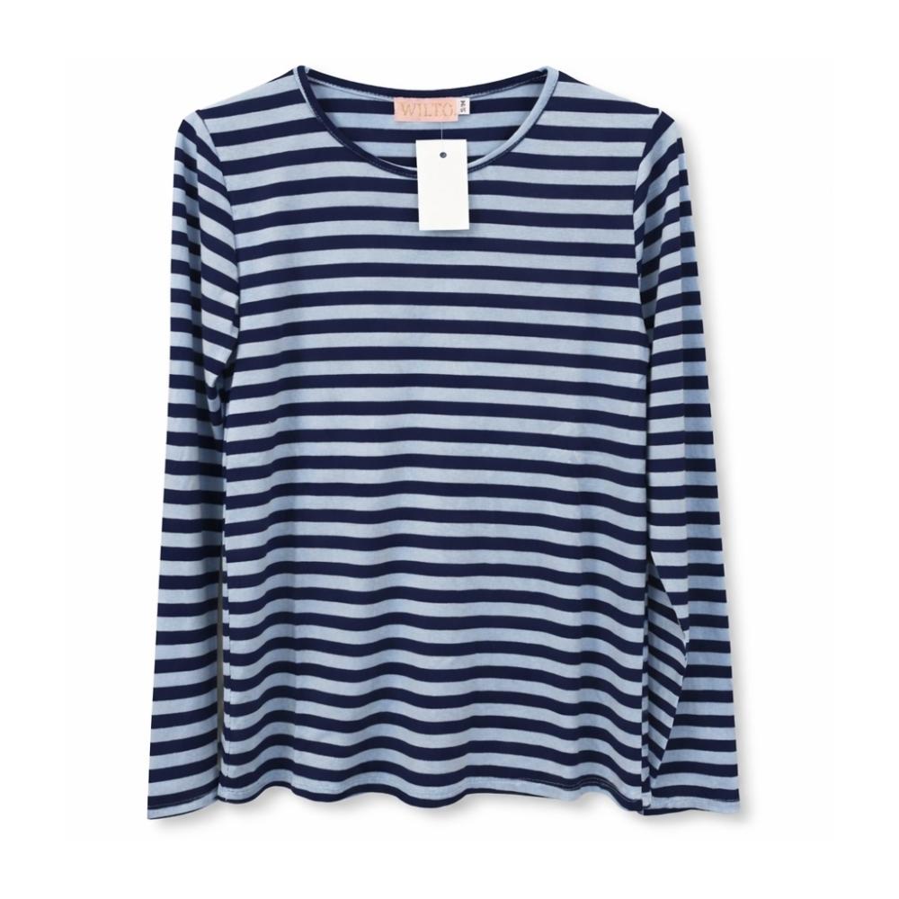 Pillan är en tunn och skön topp med lång ärm och tidlöst randigt uttryck. Den smala randen ger ett fräscht intryck och gör den lätt att matcha med både jeans, kjol och kostymbyxor. Passformen är bekväm och följsam utan att sitta för tajt.