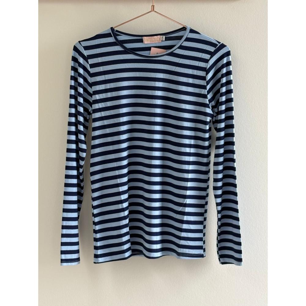 Tunn, skön topp i smalrandigt; två blå nyanser. Perfekt att ha under en stickad väst, kofta, tröja - eller bär den som den är till ett par snygga jeans.