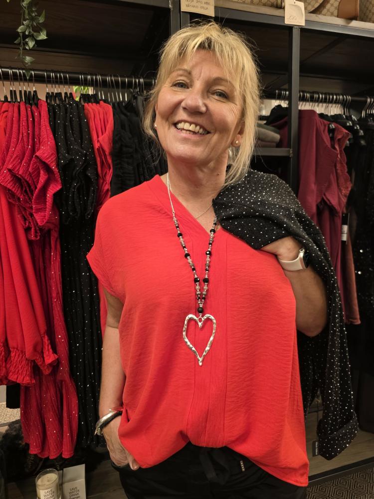 Topp V-hals, Röd Karro - Caramelle Fashion