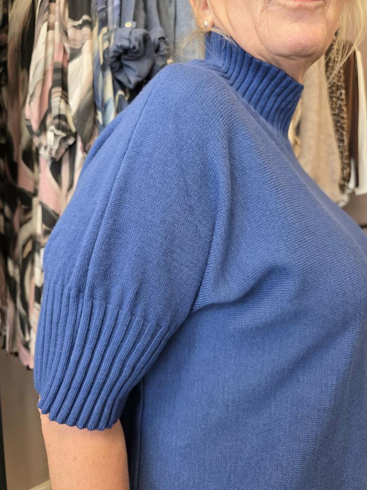 Trevlig tröja med ribbstickad krage och ribbstickad kortare ärm - Onesize