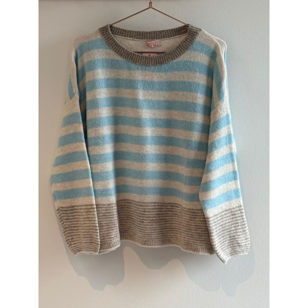 Trevlig tröja i olika breda ränder, Blå, offwhite och taupe - Onesize