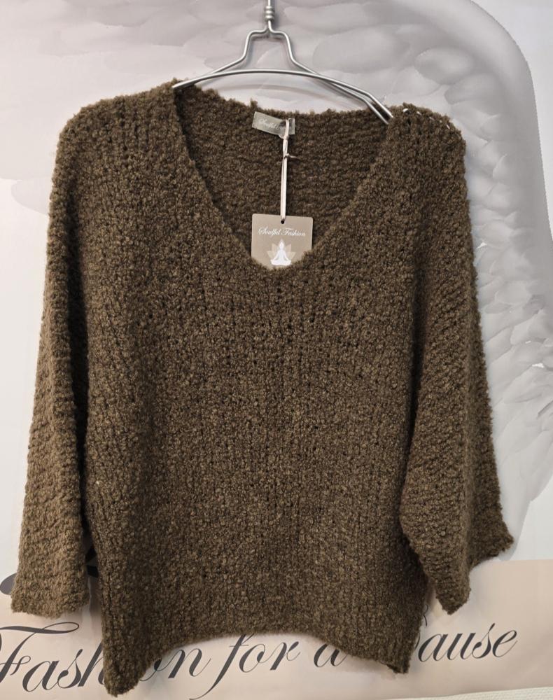 stickad tröja v-hals grovstickad onesize Soulful Fashion