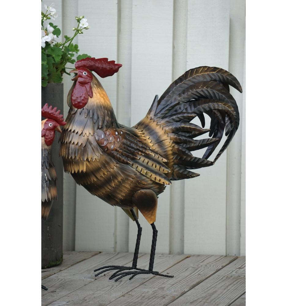 Denna stora och dekorativa tupp i metall är ett fantastiskt komplement till ditt hem. Den vackert målade fjäderdräkten och naturtrogna detaljerna gör den till en verkligt iögonfallande prydnad, perfekt för både påskpynt och året-runt-dekoration.