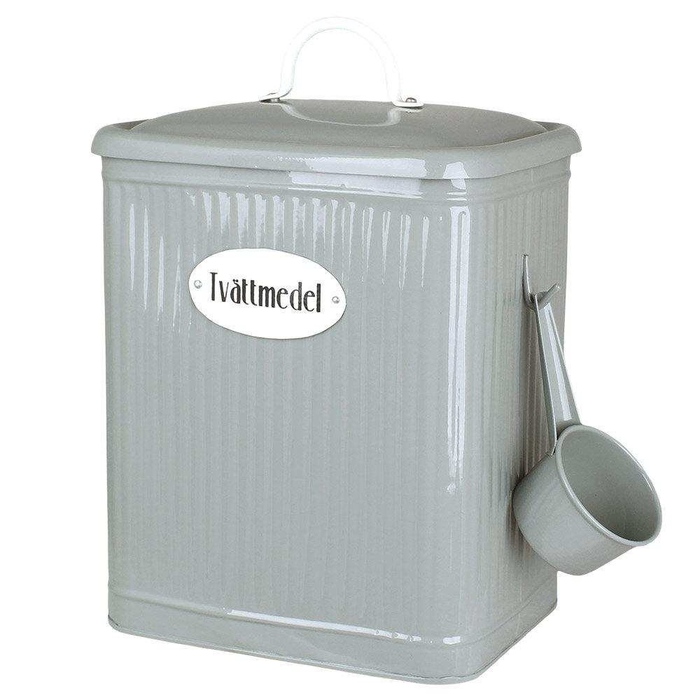 Tvättmedelsburk med skopa, Grön - Hugo, Strömshaga Praktisk och stilren förvaring för tvättmedel i plåt med retrodesign och medföljande doseringsskopa.