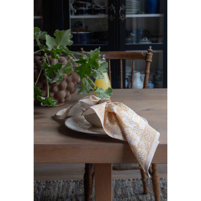 Maxa dukningen med denna vackra servett, gul med mönster i offwhite