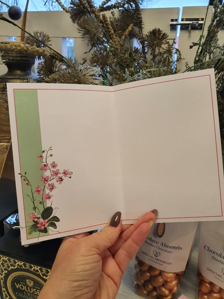 Inuti kortet: Ingen text men med motiv av en orkidé-ranka.