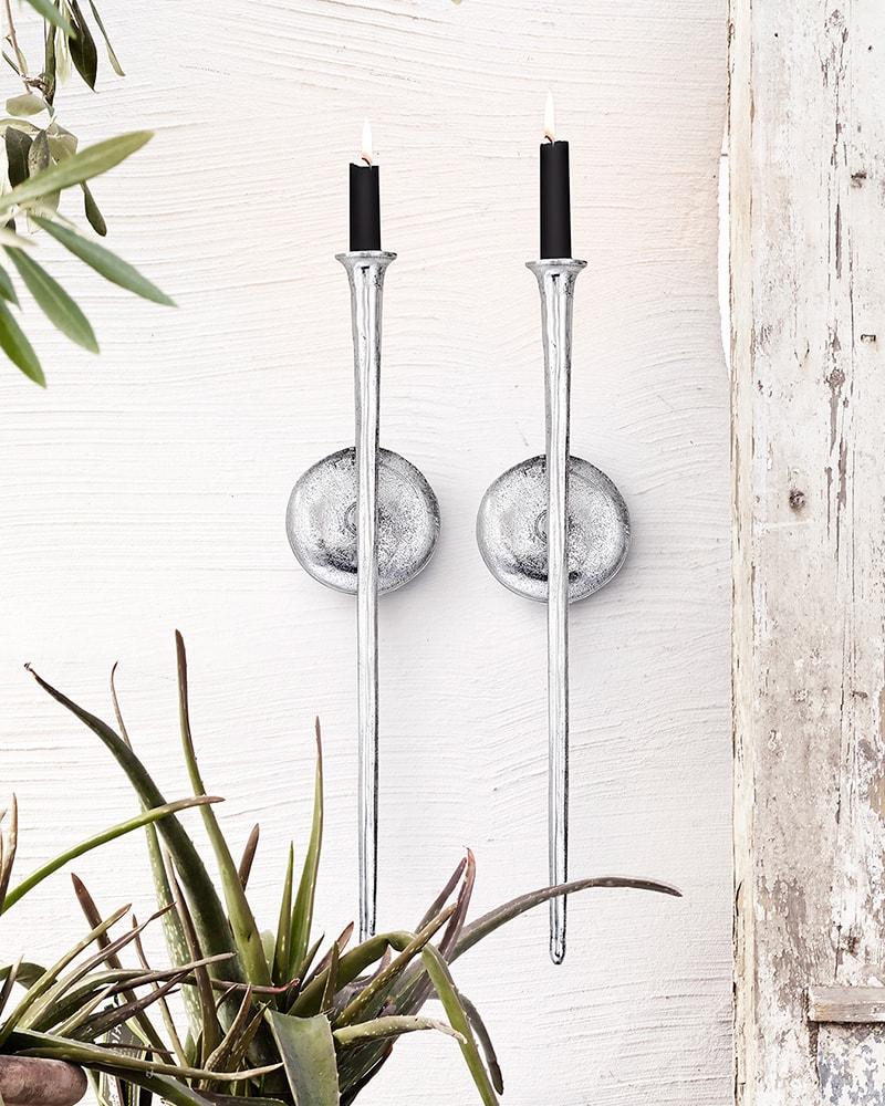 Rustik väggljusstake i rå gjuten silverfärgad aluminium