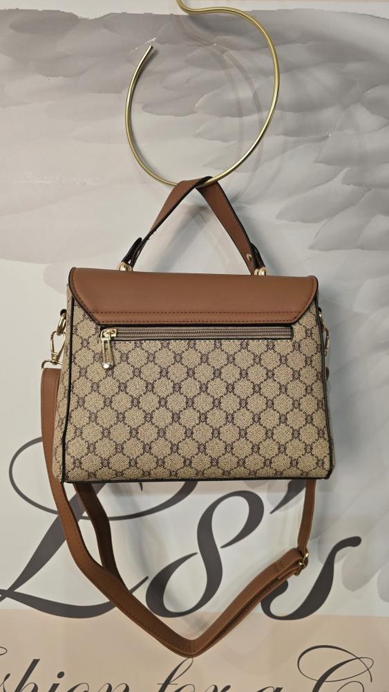 Nico är väskan som lyfter hela din outfit med sin eleganta design och genomtänkta detaljer. Den mönstrade ytan kombineras med ett lock och axelrem i en djupare ton, vilket ger en stilfull kontrast. De guldfärgade beslagen adderar en touch av lyx och gör väskan perfekt både till vardag och fest.