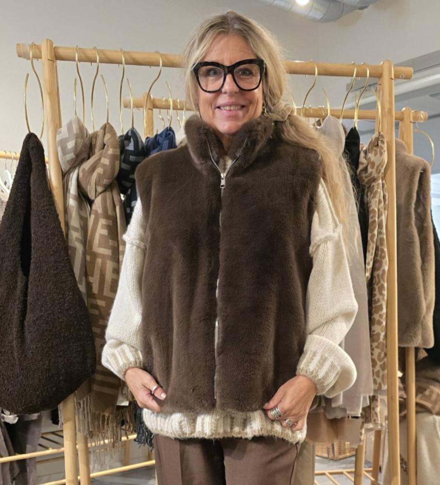 Väst i fejkpäls, Coffee, Tanja - Soulful Fashion