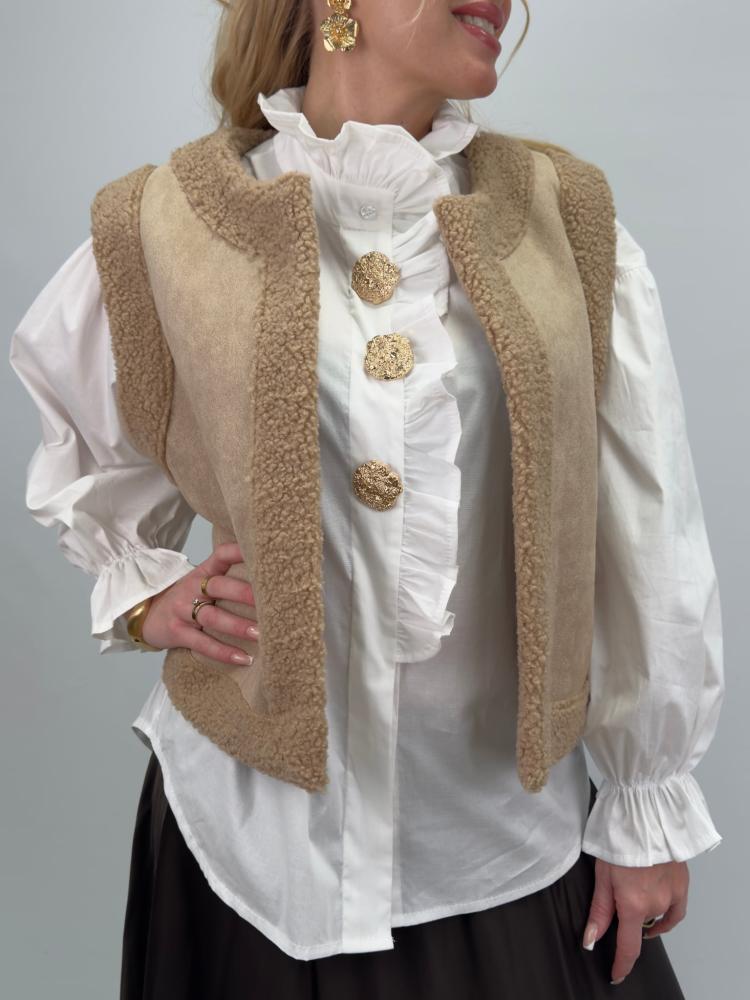 Kerstin – väst i fuskmocka med mjukt teddyfoder