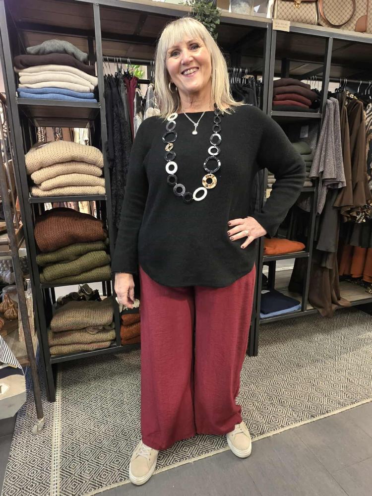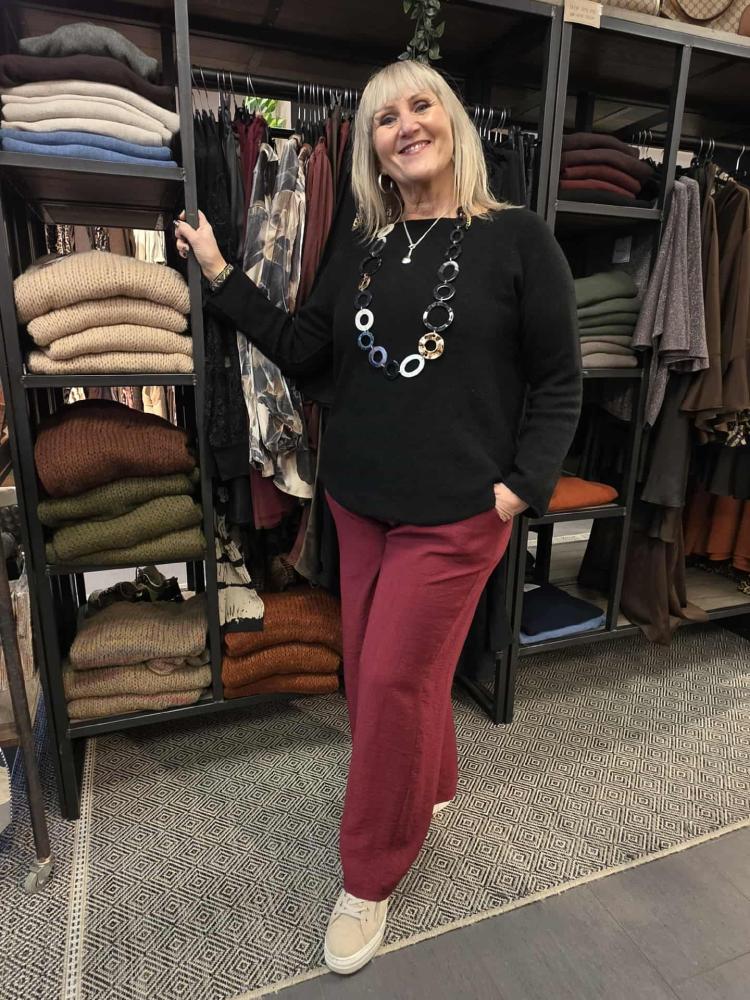 Byxa, Vida ben - resår & knytband, Vinröd, Sanne - Soulful Fashion