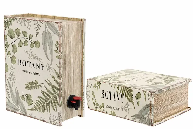Förvara lådvinet på ett snyggt sätt, med denna vinbox i form av en bok.