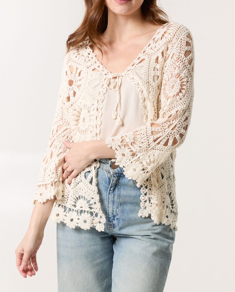 Caramelle Fashion cardigan virkad bomull dubbelstorlek somrig feminin