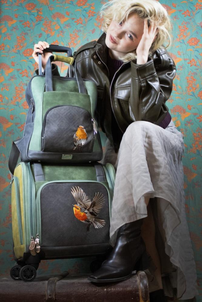 Voyage är en resväska som kombinerar genomtänkt funktion med ett uttryck som verkligen sticker ut. Den rymmer allt du behöver för jobbresan eller weekendtrippen och har flera smarta fack som gör packningen både enkel och överskådlig. De mjuka rullande hjulen och det justerbara handtaget gör väskan smidig att hantera, medan det broderade fågelmotivet framtill ger en unik och personlig känsla. En väska för dig som vill resa organiserat, bekvämt och med stil.