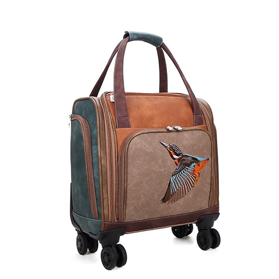 Stilfull resväska med broderad kungsfiskare – designad för smart och elegant resande
