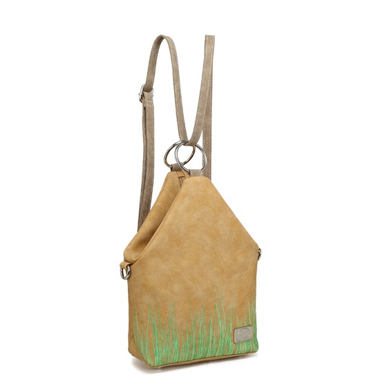 En charmig hand-, axelremsväska och ryggsäck i persikoton med vackert broderade vildblommor. En smart liten väska som kombinerar säker funktion, flexibel design och ett mjukt, blommigt uttryck.